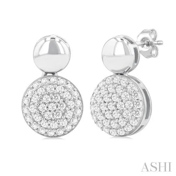 1/3 Ctw Circular Mount Pave Set Round Cut Diamond Fashion Earring in 10K White Gold Image 2 Adler's Diamonds Saint Louis, MO