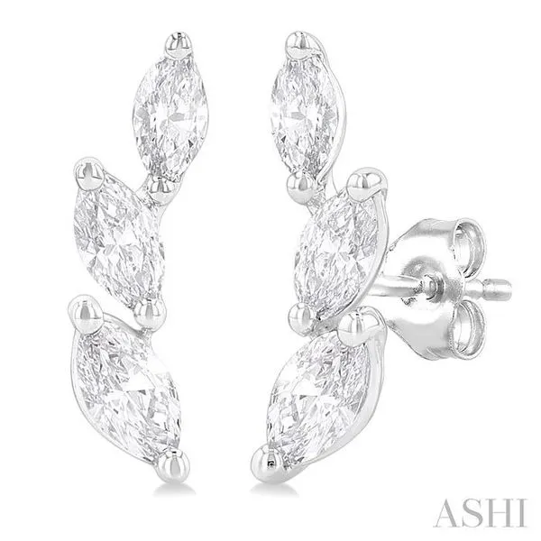 1/3 Ctw Graduated Marquise Cut Diamond Fashion Ear Climbers in 14K White Gold Image 2 Adler's Diamonds Saint Louis, MO