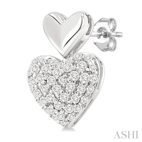 3. 1/3 Ctw Heart Shape Mount Pave Set Round Cut Diamond Fashion Earrings in 10K White Gold