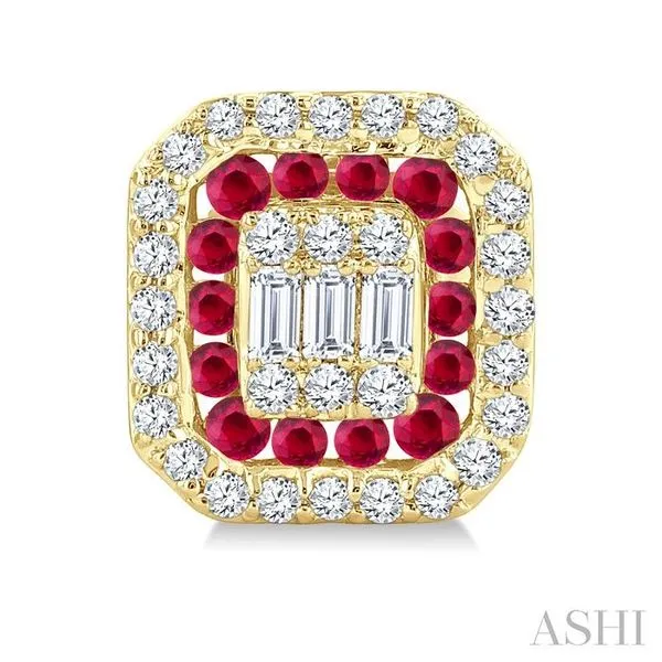 1/3 Ctw Octagonal Shape 1.25MM Round Cut Ruby, Baguette and Round Cut Diamond Fusion Precious Stud Earring in 14K Yellow Gold Image 2 Adler's Diamonds Saint Louis, MO