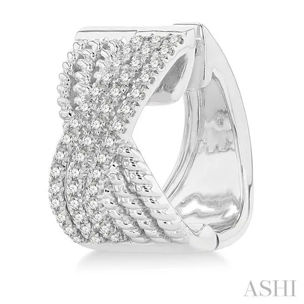 1/3 Ctw Petite Wide Criss Cross Rope and Round Cut Diamond Fashion Huggies in 14K White Gold Image 2 Adler's Diamonds Saint Louis, MO