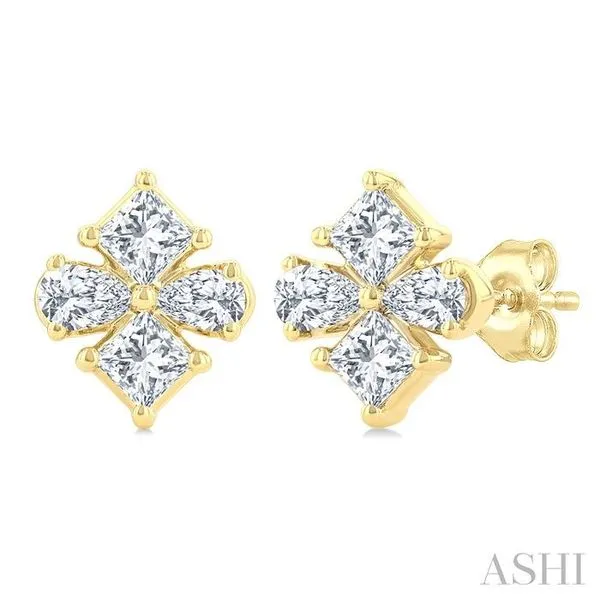 3. 1/3 Ctw Princess and Pear Cut Diamond Fashion Earrings in 14K Yellow Gold