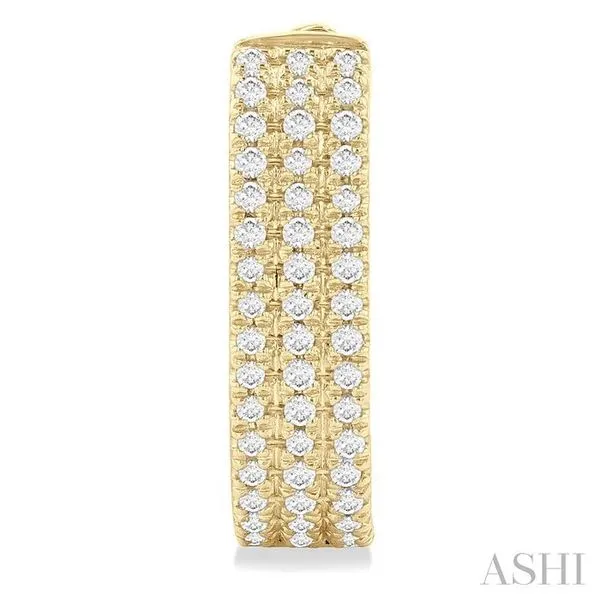 1/3 Ctw Triple Row Round Cut Diamond Hoop Earring in 10K Yellow Gold Image 2 Adler's Diamonds Saint Louis, MO