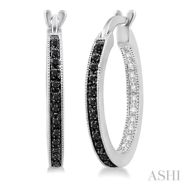 1/3 Ctw White and Black Diamond Hoop Earrings in Sterling Silver Image 2 Adler's Diamonds Saint Louis, MO