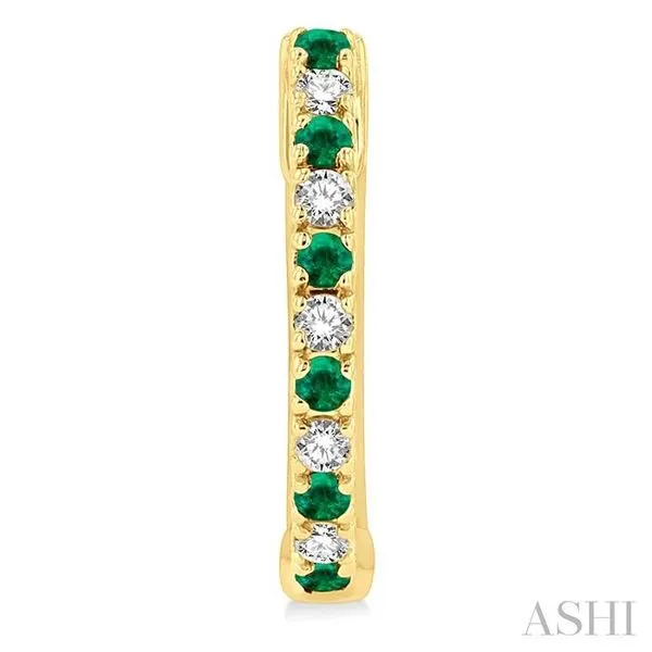 1.35 MM Round Shape Emerald and 1/10 Ctw Petite Round Cut Diamond Precious Fashion Huggies in 10K Yellow Gold Image 3 Adler's Diamonds Saint Louis, MO