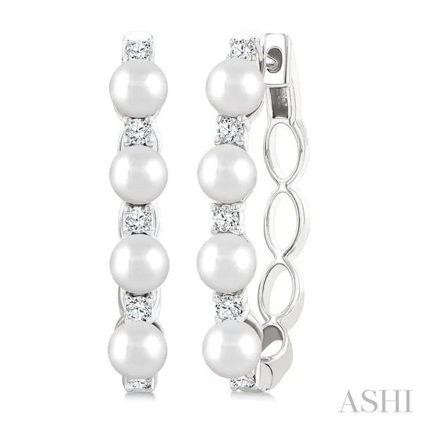 1/4 Ctw 4MM White Pearl and Round Cut Diamond Fashion Hoop Earring in 14K White Gold Image 2 Adler's Diamonds Saint Louis, MO