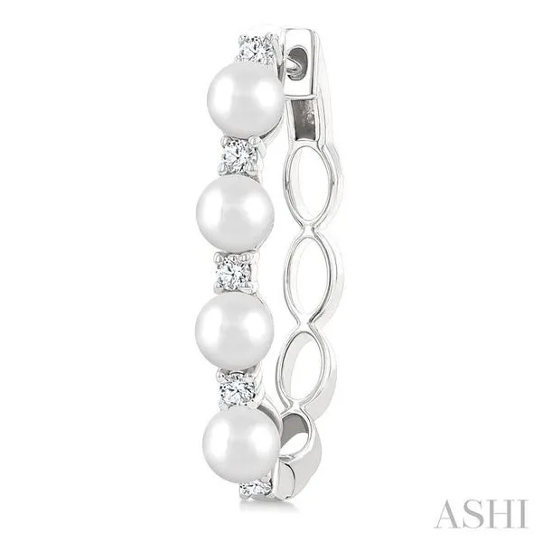 1/4 Ctw 4MM White Pearl and Round Cut Diamond Fashion Hoop Earring in 14K White Gold Image 3 Adler's Diamonds Saint Louis, MO