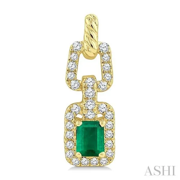 1/4 Ctw 4X3MM Emerald and Round Cut Diamond Halo Precious Link Earring in 14K Yellow Gold Image 2 Adler's Diamonds Saint Louis, MO