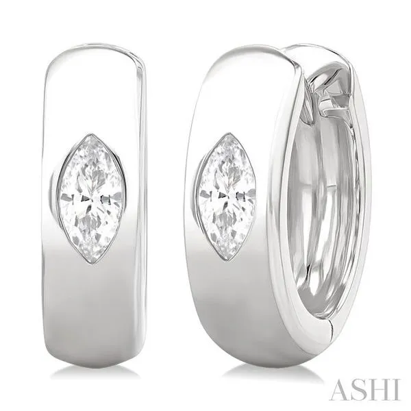 1/4 Ctw Bezel Set Marquise Cut Diamond Fashion Huggie Earrings in 14K White Gold