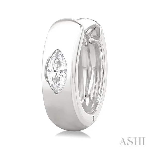 1/4 Ctw Bezel Set Marquise Cut Diamond Fashion Huggie Earrings in 14K White Gold Adler's Diamonds Saint Louis, MO