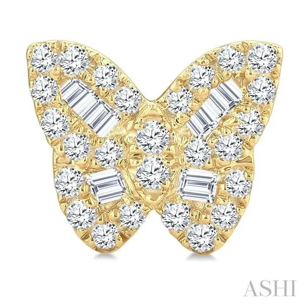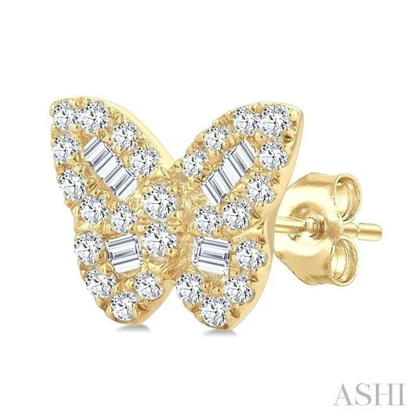 1/4 Ctw Butterfly Baguette and Round Cut Diamond Petite Earrings in 10K Yellow Gold Image 2 Adler's Diamonds Saint Louis, MO