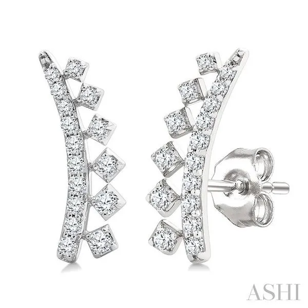 1/4 Ctw Curved Bar Geometric Round Cut Diamond Fashion Ear Climber in 14K White Gold Adler's Diamonds Saint Louis, MO
