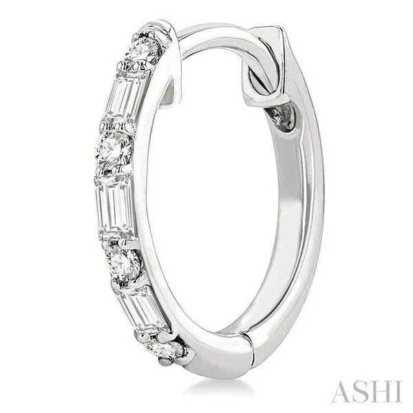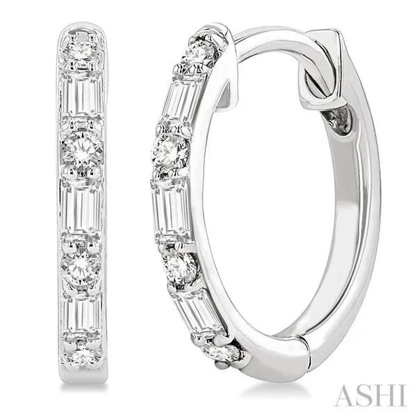 1/4 Ctw Petite Baguette and Round Cut Diamond Fashion Huggies in 10K White Gold Adler's Diamonds Saint Louis, MO