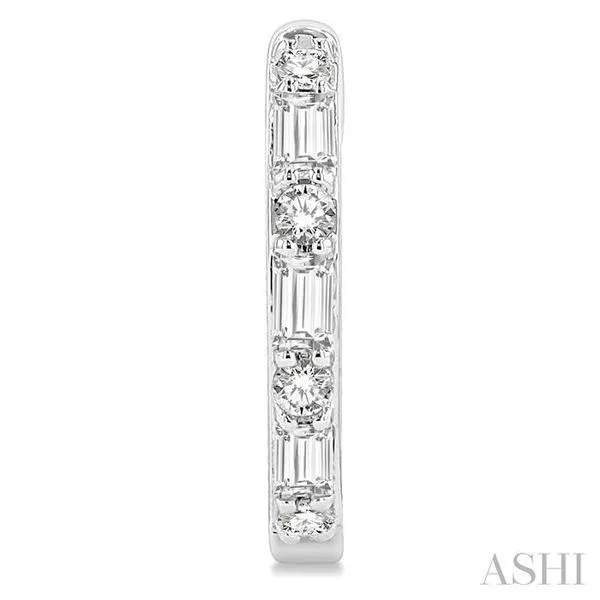 1/4 Ctw Petite Baguette and Round Cut Diamond Fashion Huggies in 10K White Gold Image 4 Adler's Diamonds Saint Louis, MO