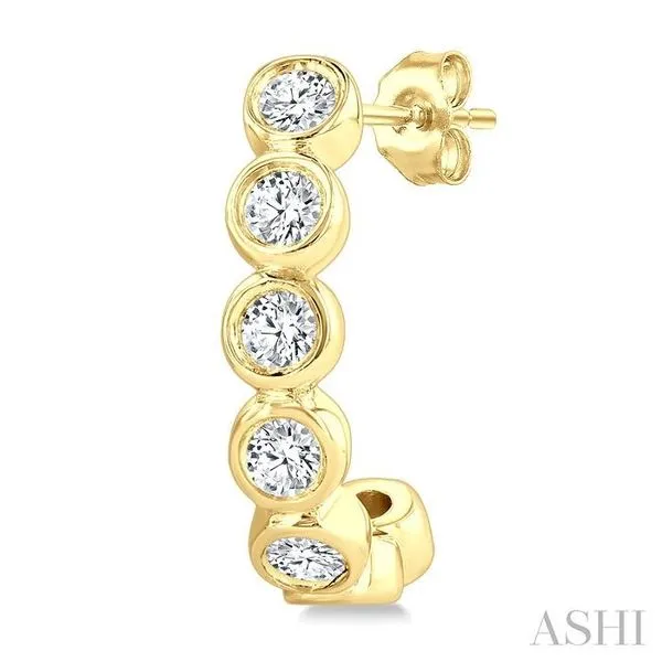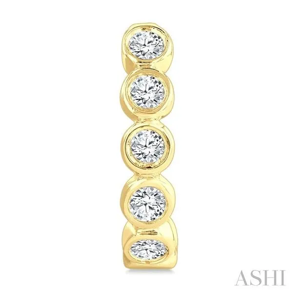 1/4 Ctw Petite Bezel Set Round Cut Diamond Fashion Half Hoop Earring in 10K Yellow Gold Image 3 Adler's Diamonds Saint Louis, MO
