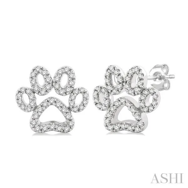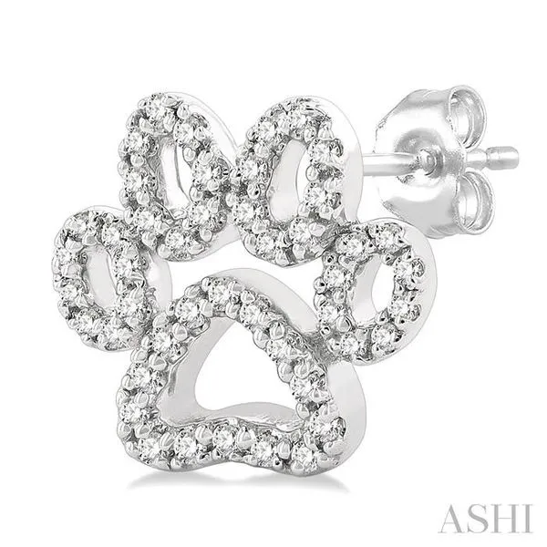 1/4 Ctw Petite Dog Paw Round Cut Diamond Fashion Stud Earring in 10K White Gold Adler's Diamonds Saint Louis, MO