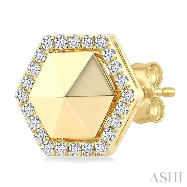 1/4 Ctw Petite Hexagon Single Cut Diamond Halo Fashion Stud Earrings in 14K Yellow Gold Image 3 Adler's Diamonds Saint Louis, MO