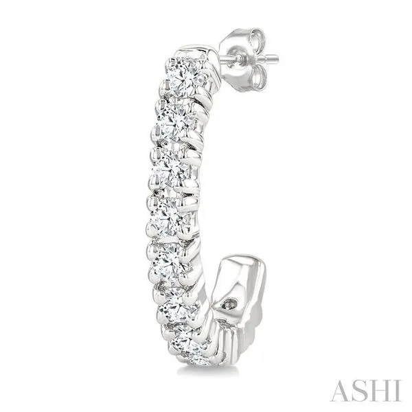 1/4 Ctw Petite Round Cut Diamond Fashion Half Hoop Earrings in 10K White Gold Image 2 Adler's Diamonds Saint Louis, MO