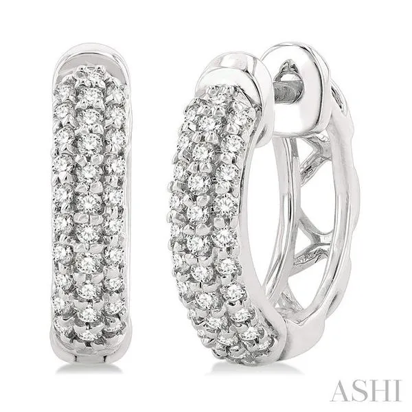 3. 1/4 Ctw Petite Triple Row Round Cut Diamond Fashion Huggies in 10K White Gold