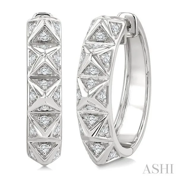 1/4 Ctw Pyramid Accent Round Cut Diamond Fashion Hoop Earring in 10K White Gold Adler's Diamonds Saint Louis, MO