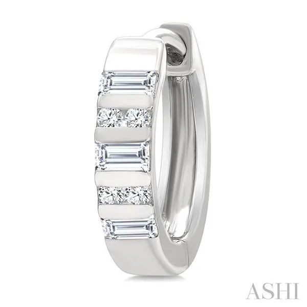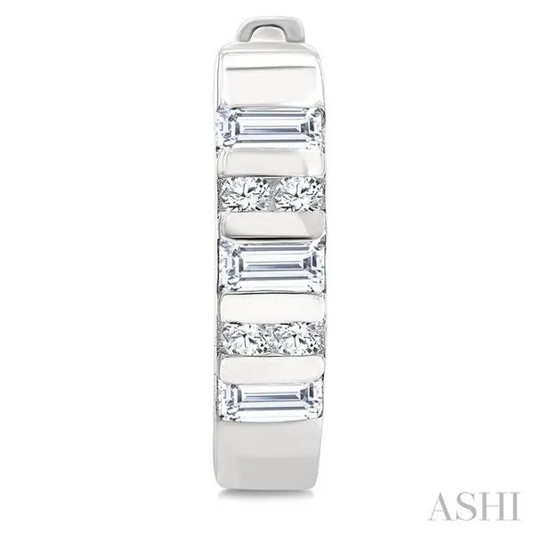 1/4 Ctw Ribbed Baguette and Round Cut Diamond Huggie Petite Earring in 10K White Gold Image 2 Adler's Diamonds Saint Louis, MO