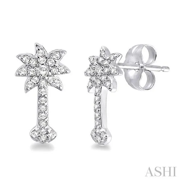 1/4 Ctw Round Cut Diamond Palm Tree Earrings in 10K White Gold Adler's Diamonds Saint Louis, MO