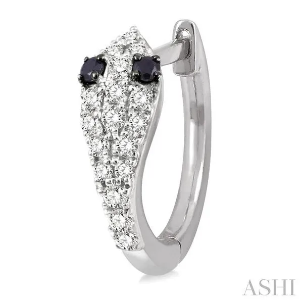 1/4 Ctw Serpent Head With Black Diamond Eyes Round Cut Diamond Huggie Petite Earrings in 14K White Gold Image 2 Adler's Diamonds Saint Louis, MO