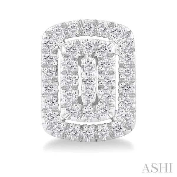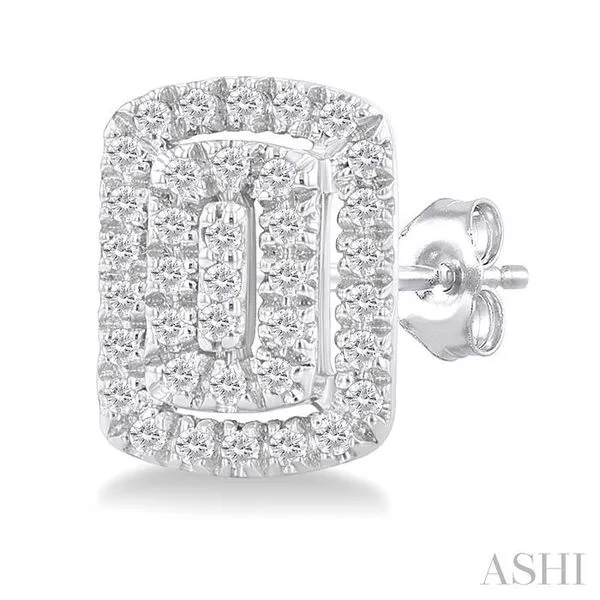 1/5 Ctw Double Halo Emerald Shape Petite Round Cut Diamond Fashion Stud Earring in 10K White Gold Image 3 Adler's Diamonds Saint Louis, MO