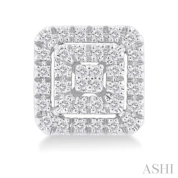 1/5 Ctw Double Halo Square Shape Petite Round Cut Diamond Fashion Stud Earring in 10K White Gold Adler's Diamonds Saint Louis, MO