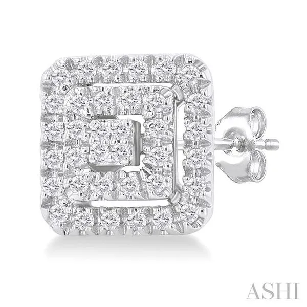 1/5 Ctw Double Halo Square Shape Petite Round Cut Diamond Fashion Stud Earring in 10K White Gold Image 2 Adler's Diamonds Saint Louis, MO