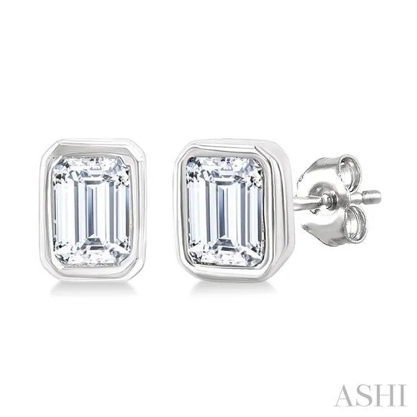 1/5 Ctw Petite Bezel Set Emerald Cut Diamond Fashion Stud Earring in 10K White Gold Image 3 Adler's Diamonds Saint Louis, MO