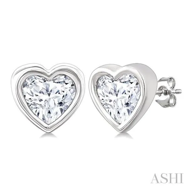 1/5 Ctw Petite Bezel Set Heart Shape Diamond Fashion Stud Earring in 10K White Gold Image 3 Adler's Diamonds Saint Louis, MO