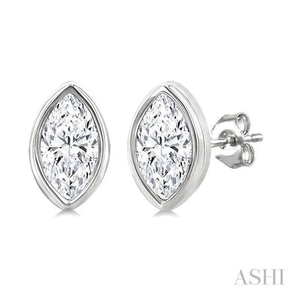 1/5 Ctw Petite Bezel Set Marquise Cut Diamond Fashion Stud Earring in 10K White Gold Image 3 Adler's Diamonds Saint Louis, MO