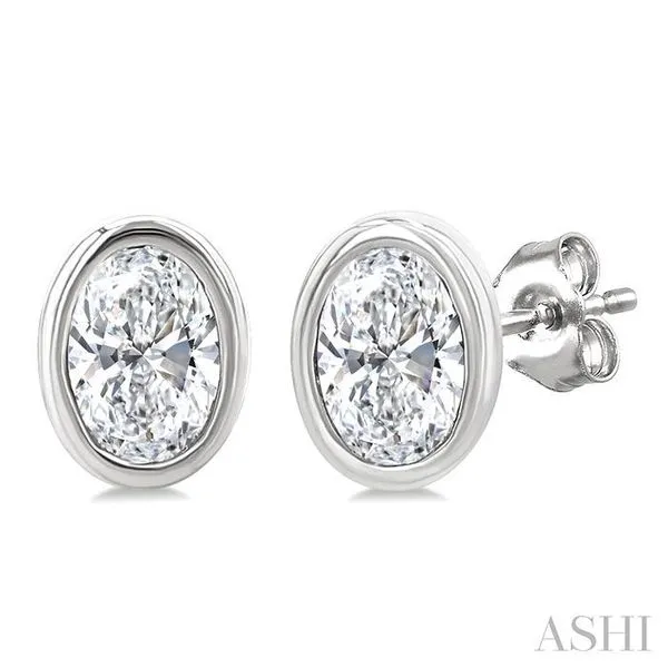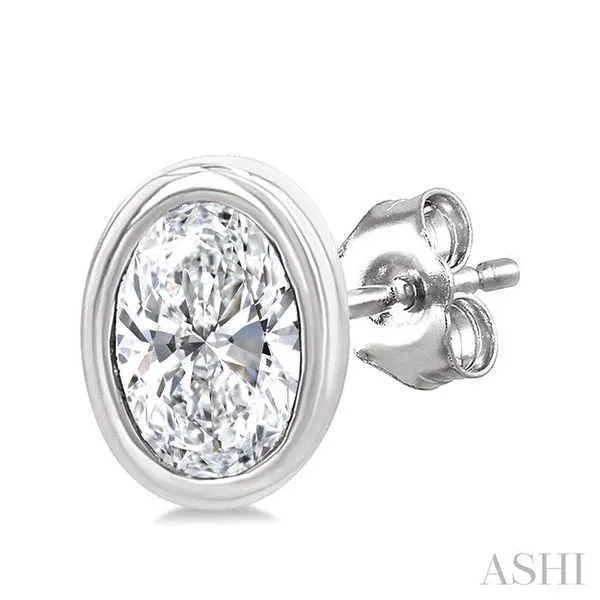 1/5 Ctw Petite Bezel Set Oval Cut Diamond Fashion Stud Earring in 10K White Gold Image 3 Adler's Diamonds Saint Louis, MO