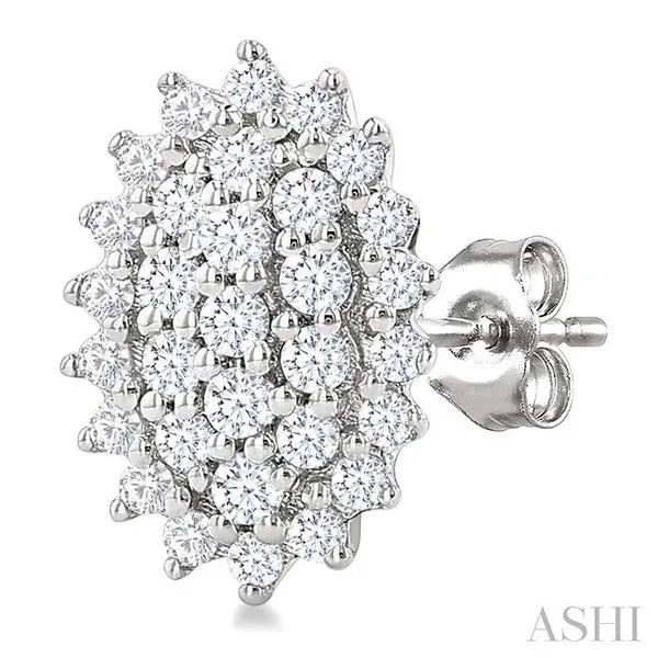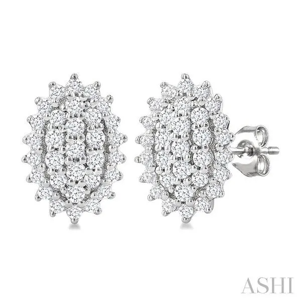 1/5 Ctw Petite Oval Shape Round Cut Diamond Cluster Fashion Stud Earring in 10K White Gold Adler's Diamonds Saint Louis, MO