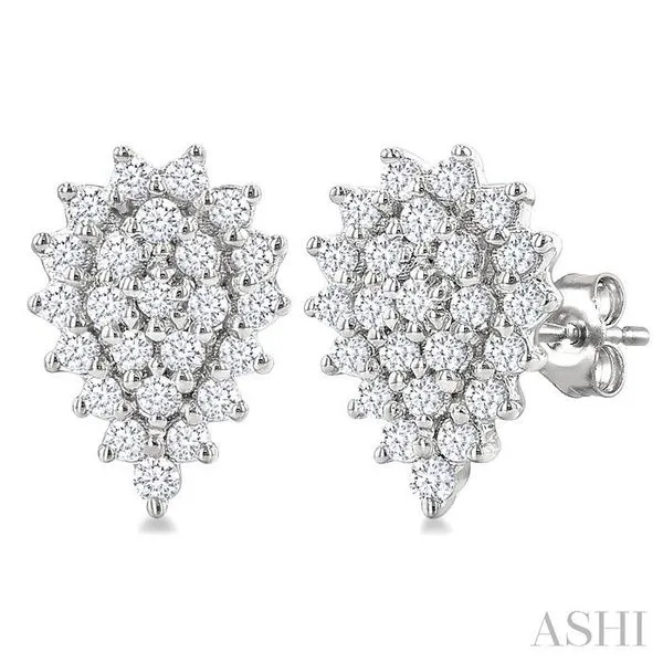 3. 1/5 Ctw Petite Pear Shape Round Cut Diamond Cluster Fashion Stud Earring in 10K White Gold