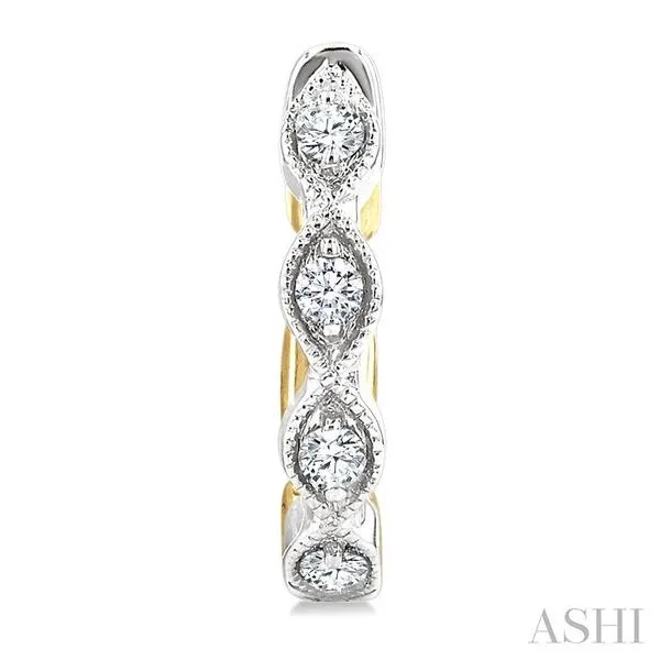 1/5 Ctw Petite Reverted Two-Tone Marquise and Hexagon Shape Round Cut Diamond Fashion Huggies in 10K White and Yellow Gold Image 3 Adler's Diamonds Saint Louis, MO