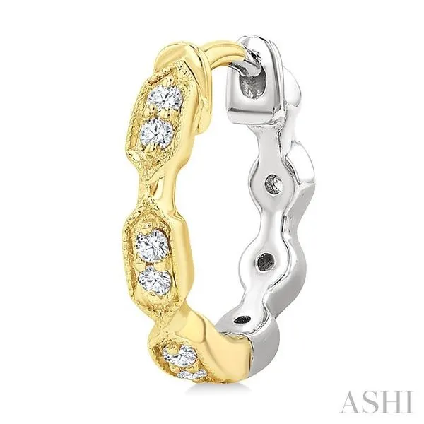 1/5 Ctw Petite Reverted Two-Tone Marquise and Hexagon Shape Round Cut Diamond Fashion Huggies in 10K White and Yellow Gold Image 2 Adler's Diamonds Saint Louis, MO