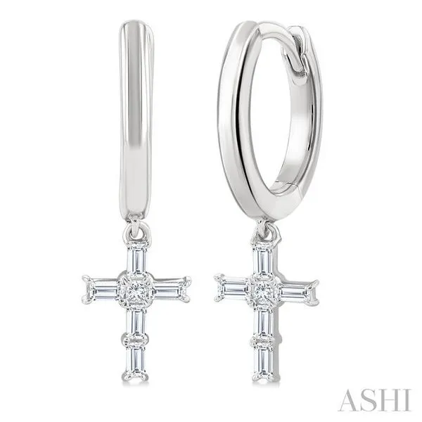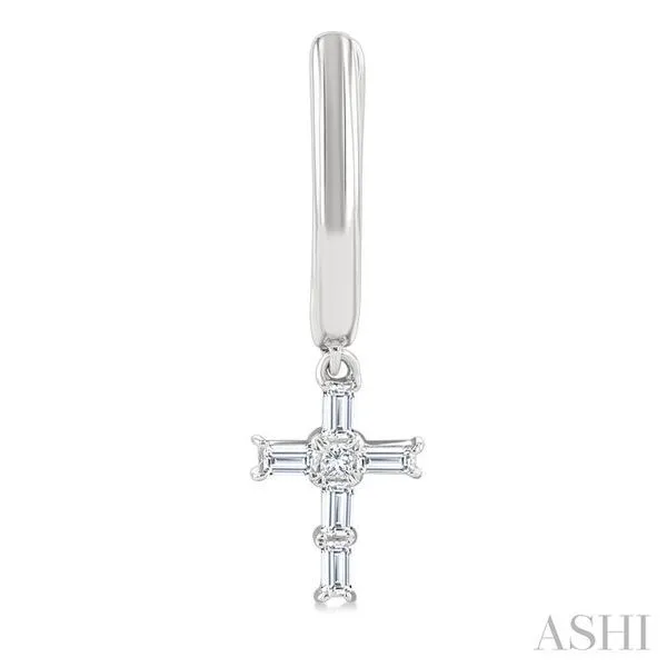 1/5 Ctw Princess and Baguette Cut Diamond Cross Petite Fashion Hoop Earrings in 10K White Gold Image 3 Adler's Diamonds Saint Louis, MO