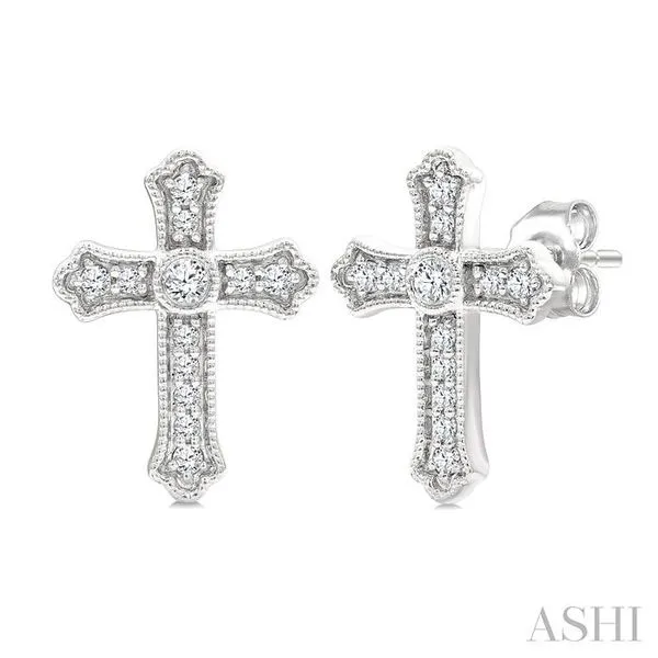 1/5 Ctw Round Cut Diamond Cross Petite Fashion Earrings in 10K White Gold Image 2 Adler's Diamonds Saint Louis, MO