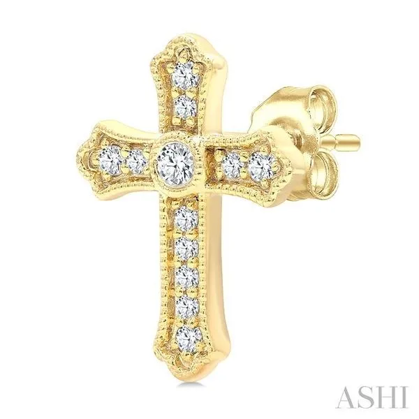 1/5 Ctw Round Cut Diamond Cross Petite Fashion Earrings in 10K Yellow Gold Image 3 Adler's Diamonds Saint Louis, MO