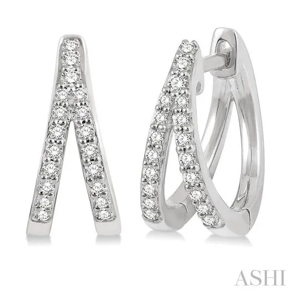 1/5 Ctw Split Round Cut Diamond Huggie Petite Earrings in 14K White Gold Image 2 Adler's Diamonds Saint Louis, MO