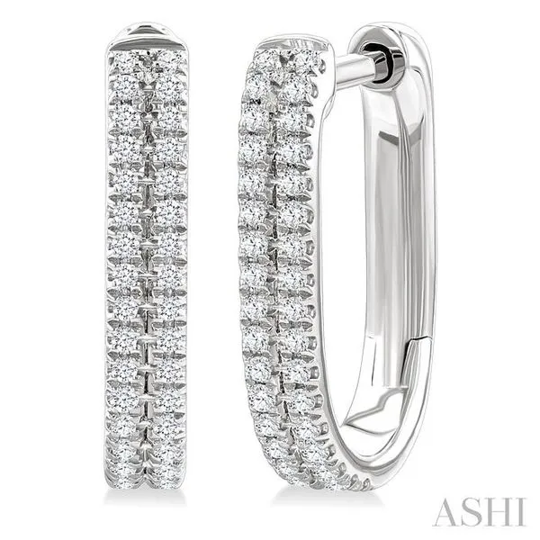 1/5 Ctw Twin Row Round Cut Diamond Fashion Hoop Earring in 10K White Gold Adler's Diamonds Saint Louis, MO