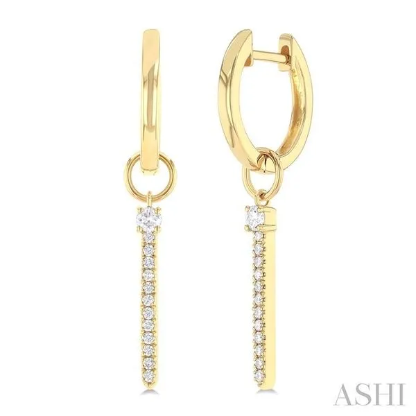 1/5 Ctw Vertical Bar Suspension Round Cut Diamond Fashion Hoop Earrings in 10K Yellow Gold Image 3 Adler's Diamonds Saint Louis, MO