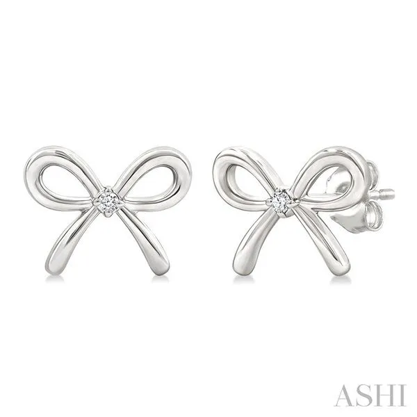 3. 1/50 Ctw Bow Round Cut Diamond Fashion Earrings in Sterling Silver