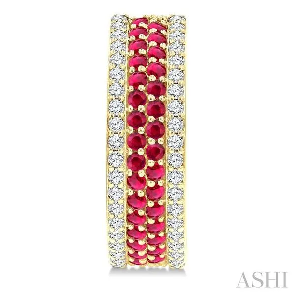 1.50 MM Round Cut Ruby and 5/8 Ctw Round Cut Diamond Precious Hoop Earrings in 14K Yellow Gold Image 2 Adler's Diamonds Saint Louis, MO