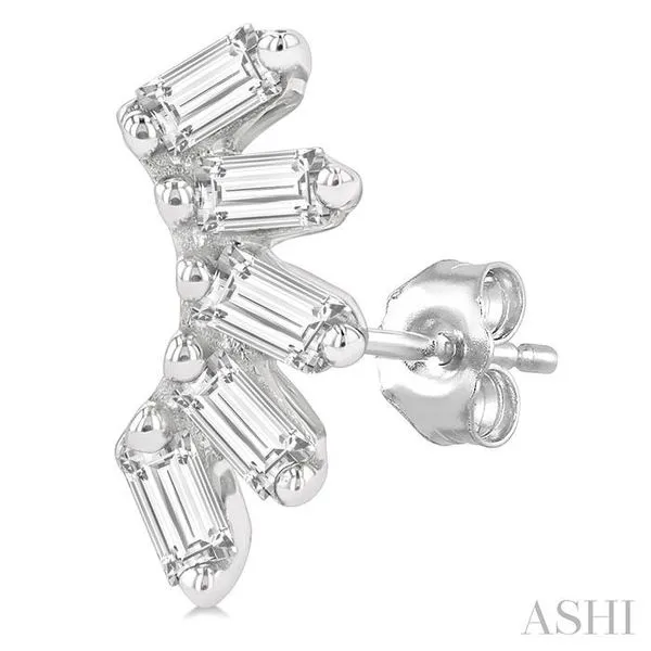 1/6 Ctw Curved Petite Baguette Cut Diamond Fashion Stud Earring in 10K White Gold Image 3 Adler's Diamonds Saint Louis, MO
