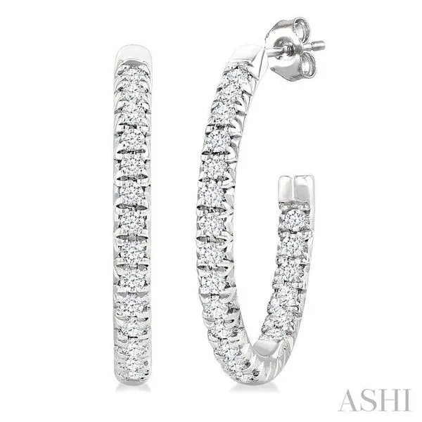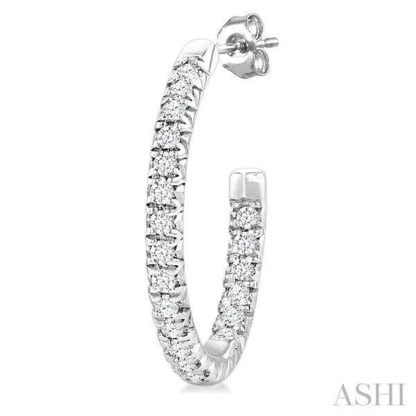 1/6 Ctw French Pave Set Round Cut Diamond Fashion Half Hoop Earring in 14K White Gold Image 4 Adler's Diamonds Saint Louis, MO