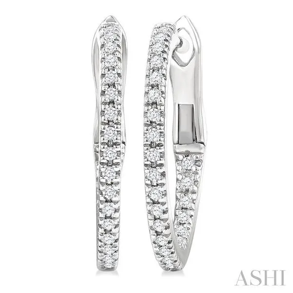 1/6 Ctw Inside & Outside Round Cut Diamond Hoop Earring in 10K White Gold Image 2 Adler's Diamonds Saint Louis, MO