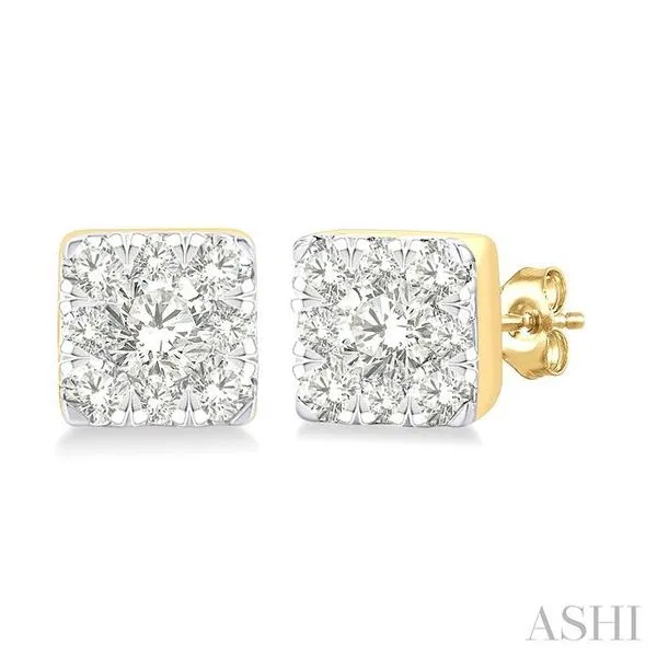1/6 Ctw Lovebright Petite Square Shape Round Cut Diamond Fashion Stud Earring in 10K Yellow Gold Image 2 Adler's Diamonds Saint Louis, MO